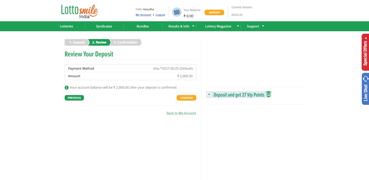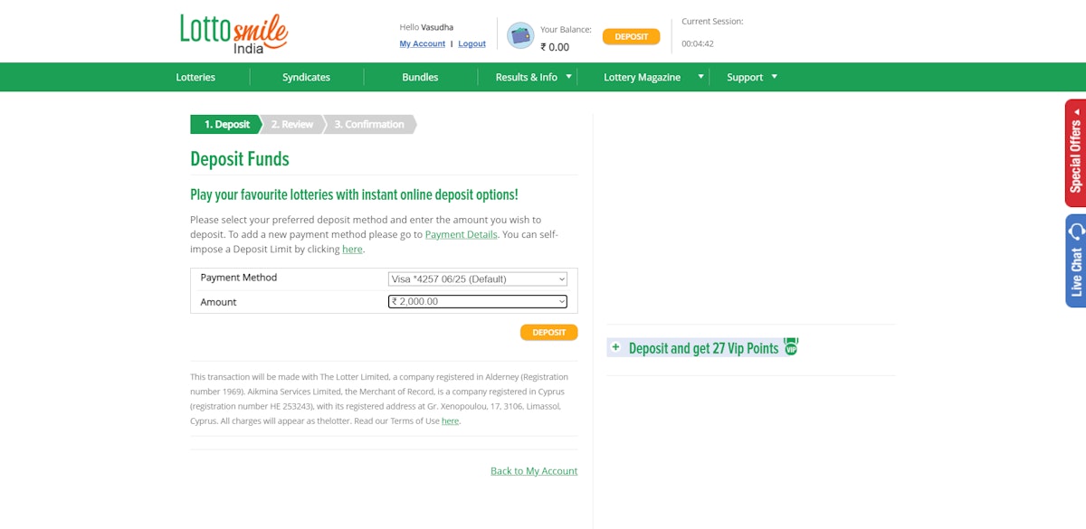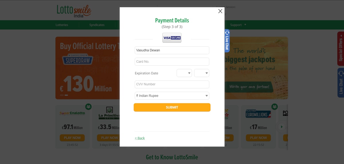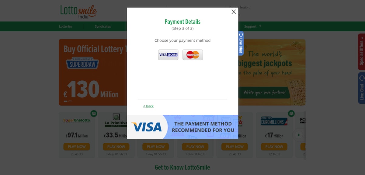 Depositing money on Lottosmile can be a bit tough, especially since they only accept VISA or Mastercard as payment options. But the good news is that most people in India have a VISA or Mastercard, which makes it possible for anybody to deposit on Lottosmile.